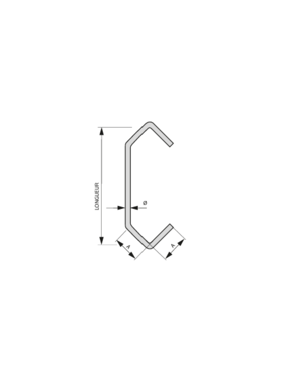 Crochet acier forme R